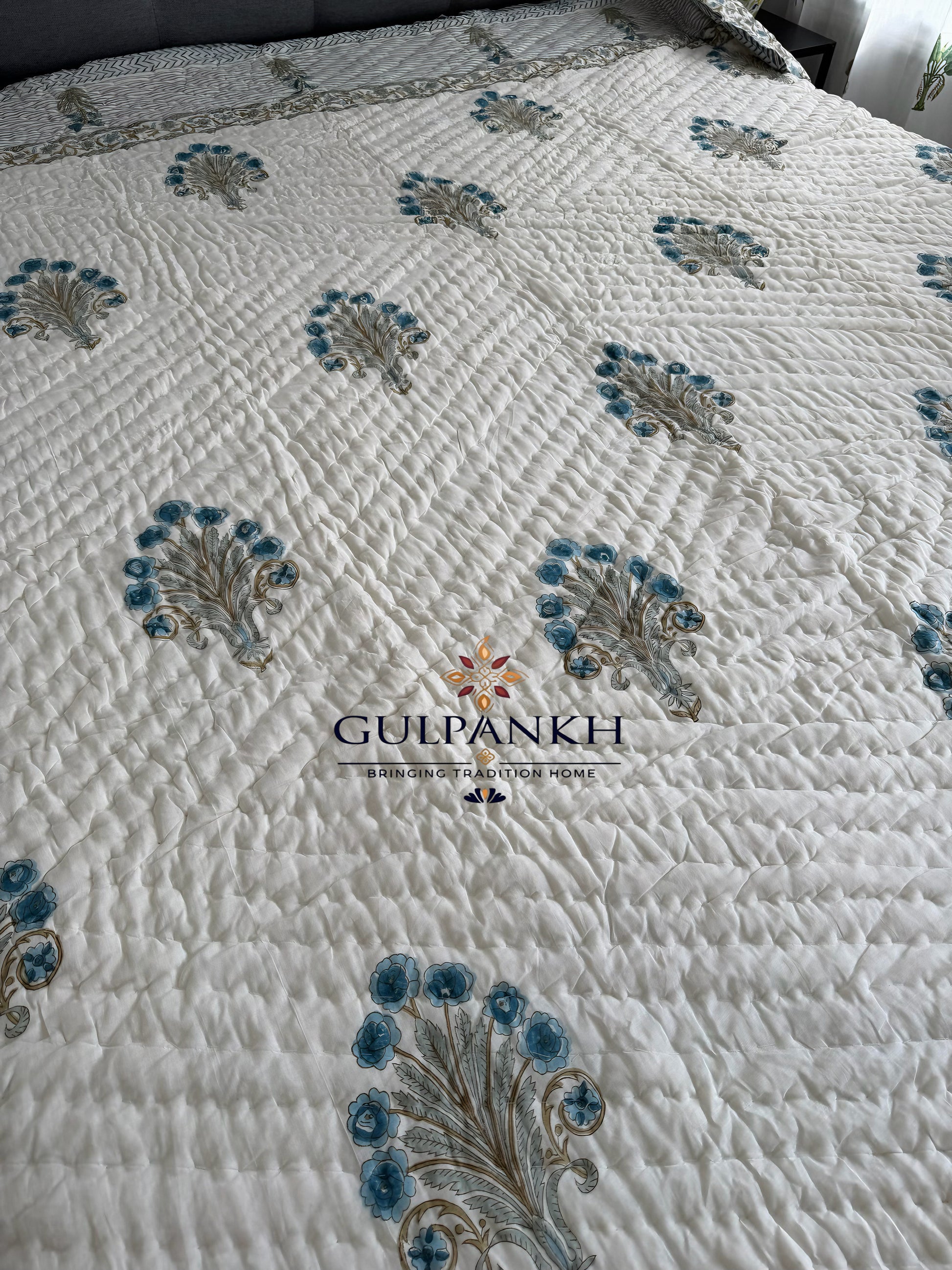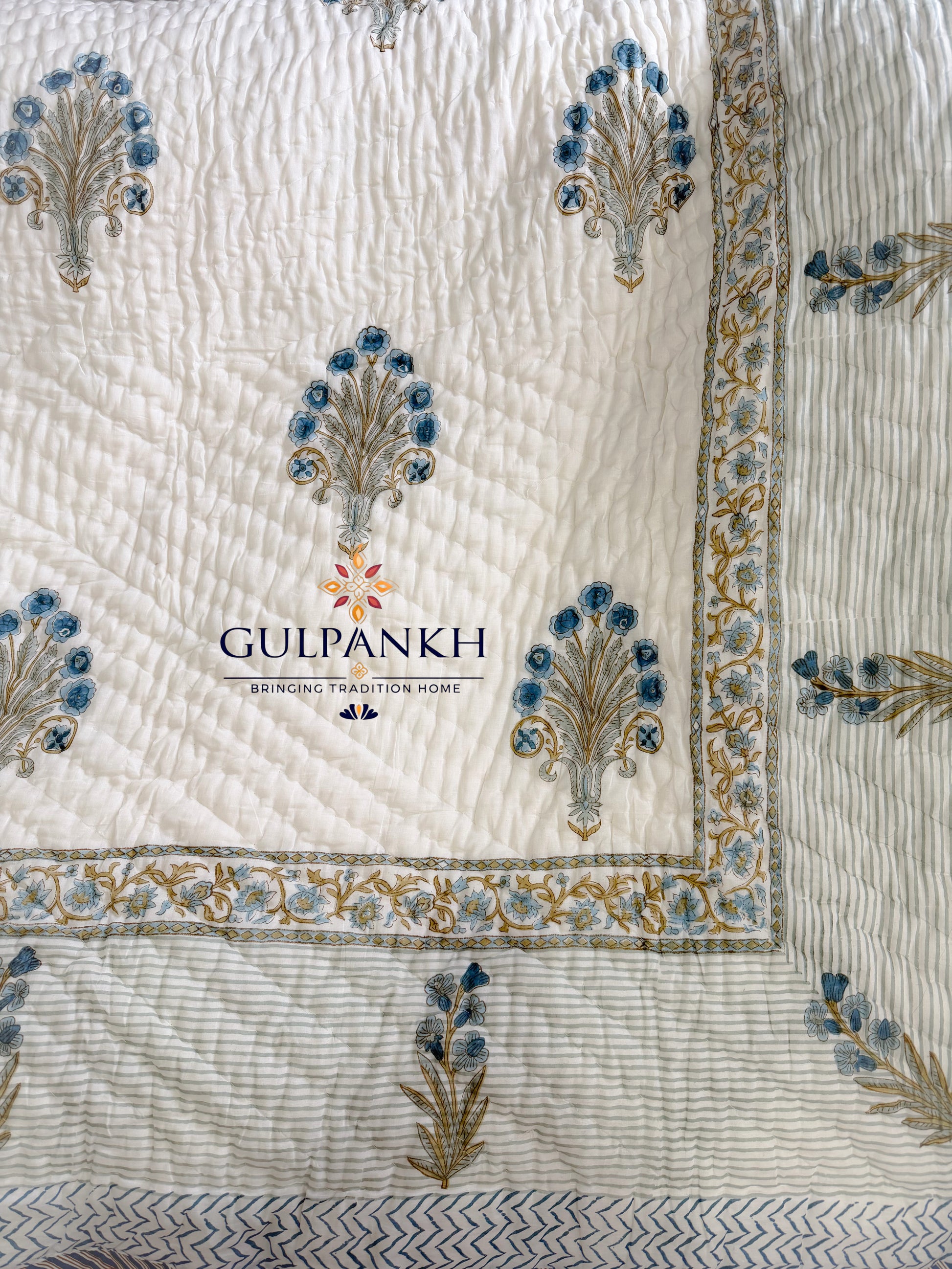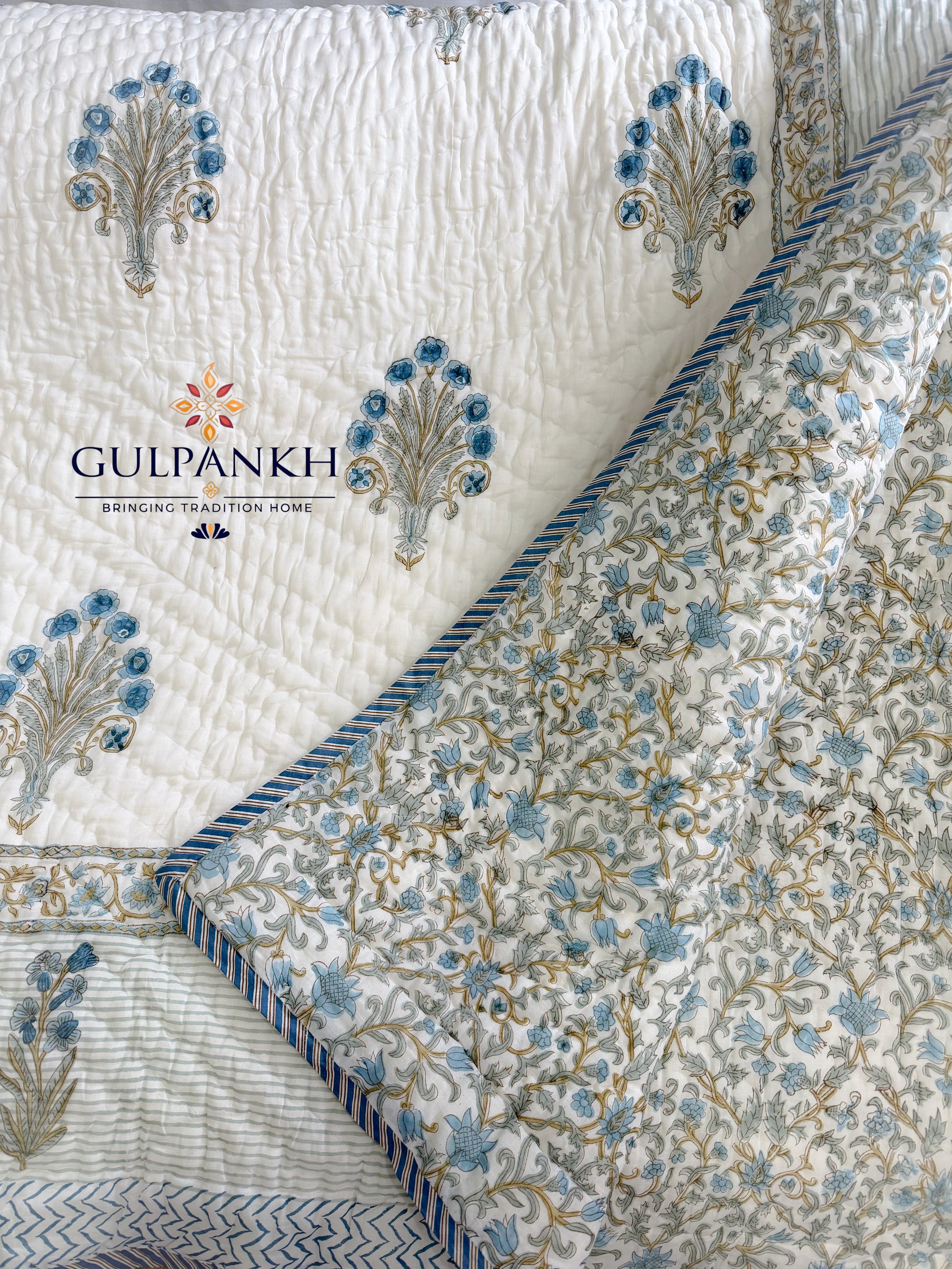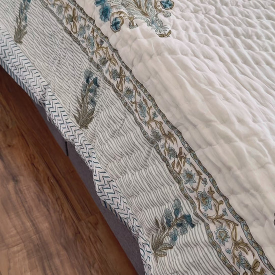 Blue Meadow Hand Block Printed Cotton Quilt | Gulpankh Canada