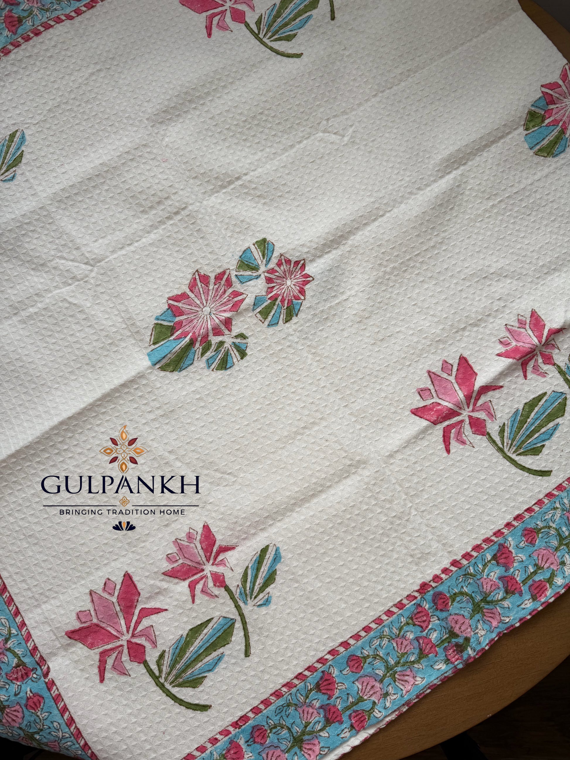Gulnaar Bloom Hand Block Printed Waffle Cotton Towel | Gulpankh Canada